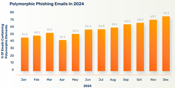 Figure 3: Polymorphic phishing is on the rise (image adapted from Phishing Threat Trends Report 2025)