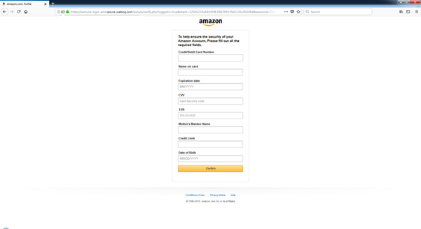 If a user clicks the provided link, it redirects to a website that resembles the Amazon website. Instead, it is a form that hackers use to harvest personal information they can use to access your accounts.